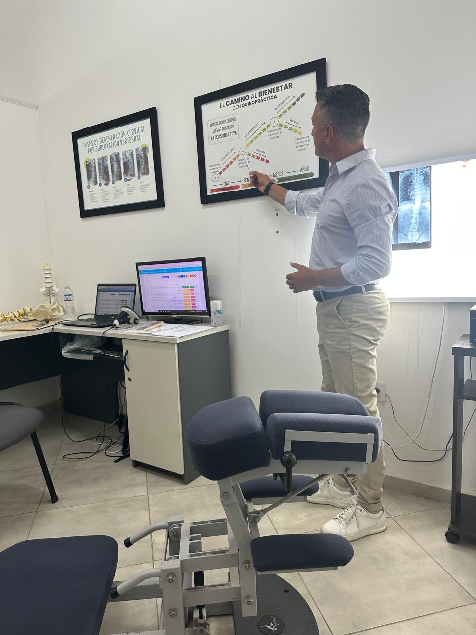 Cuenta con una amplia experiencia en mentorías y asesoramiento a quiroprácticos, y ha recorrido consultorios quiroprácticos tanto en Argentina como en Estados Unidos, analizando modelos de atención, sistemas de ajuste, equipamiento, estructura de la práctica, comunicación, planes de visitas, volumen de pacientes e impacto comunitario.